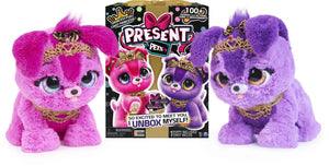 All-new breeds of Present Pets have arrived. Waiting inside each Princess Pup-themed box is an adorable, interactive Yorkie puppy just for you. She is so excited to meet you that she paws her way out of her own gift box. With one of two possible Princess Pups available in every box, you won't know which Present Pets puppy you're getting until she unboxes herself. Featuring over 100 sounds and actions, Present Pets bring to life the true happiness of what it's like to be surprised with your very own puppy.