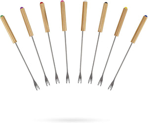 - 8 bamboo and stainless steel forks and a fondue ring included