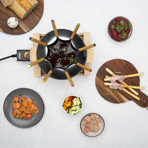 No longer any need to hide away in the kitchen during dinner parties. Simply chop and prepare your food ahead of time and then set up your fondue on your table and allow you guests to enjoy hot and fresh food. Allow you guests and loved ones to prepare their own portions using the eight included bamboo and stainless steel forks. A social and interactive dining experience.