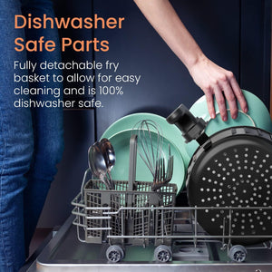 - DISHWASHER SAFE: A large fully detachable family size fry basket allows for easy cleaning and is completely dishwasher safe! So, you can fry, grill, bake and roast healthy oil free food for your whole family
