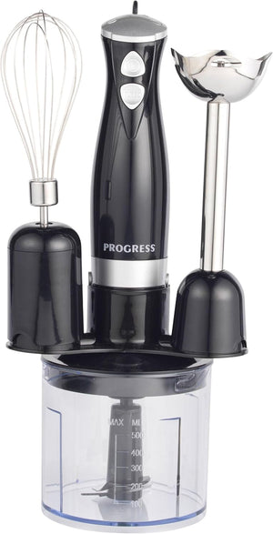 Progress 3 in 1 Electric Blender Set – Immersion Stick Blender with 2 Speed Settings, Mini Food Chopper with 500 ml Chopping Bowl, Stainless Steel Blades, Soup/Smoothie Maker, 350W, Black