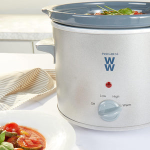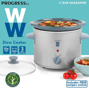 Progress by WW 3.5 L Slow Cooker, Casseroles, Curry, Baked Oats, Removable Ceramic Cooking Pot, Adjustable Temp Control, 3 Heat Settings, Cool Touch Handles, Tempered Glass Lid, Power Lights