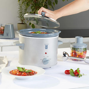 Perfect for curries, stews, risottos and cooked oats, this Slow Cooker from Progress by WW is a versatile addition to your kitchen. Easily batch cook/meal prep delicious meals with the generous 3.5 litre capacity. With a removable ceramic cooking pot for easy cleaning after use, the Slow Cooker has 3 heat settings; low, high and keep warm to suit your recipe. Featuring cool touch handles, a tempered glass lid and power/ready indicator lights, the Slow Cooker has all you need to make tasty meals.
