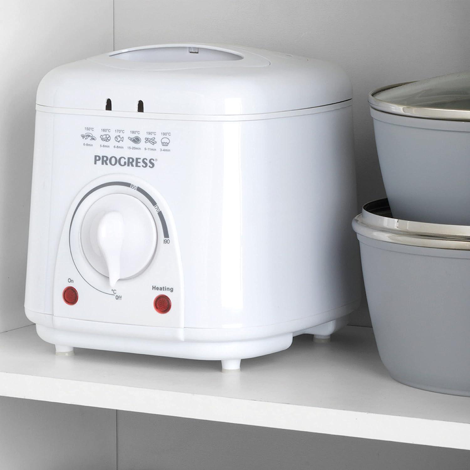 - Perfect for making all your favourite fried treats at home, this Progress deep fryer has a handy filter that reduces lingering odours.