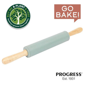 Progress Go Bake! Silicone Rolling Pin with Ergonomic Wooden Handles, Perfect for Cooking and Baking, Easy-Clean, Family Baking, Ideal for Dough, Pastry, Icing & More, 24 cm