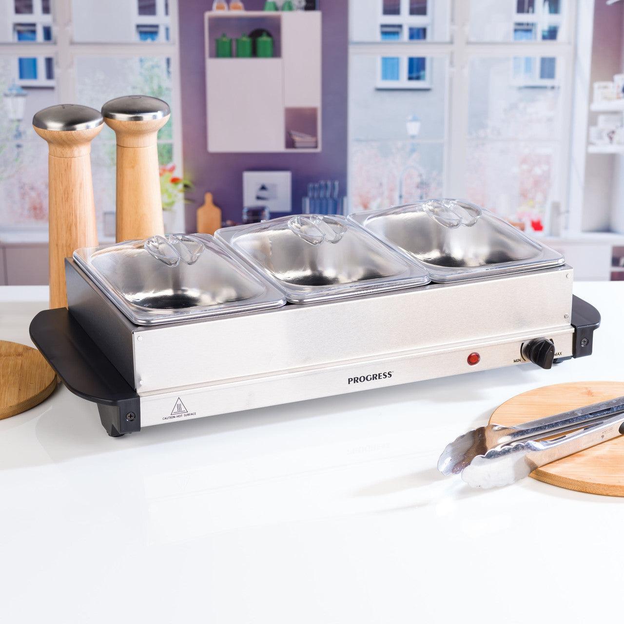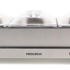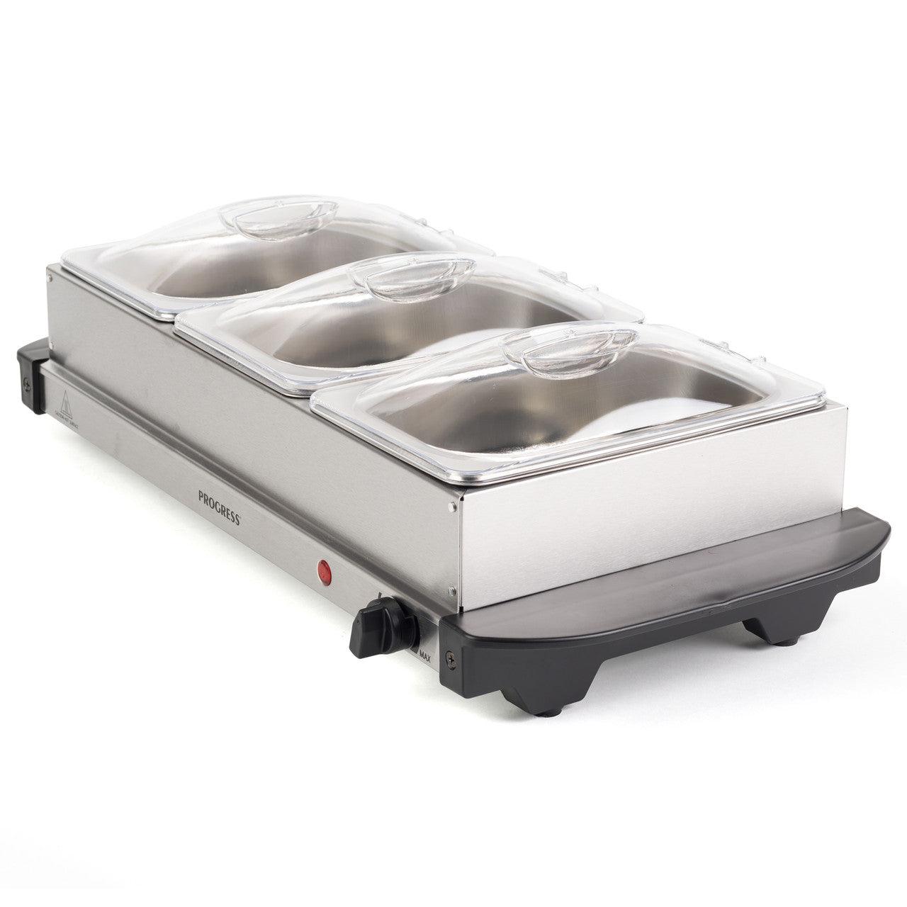 Progress Portable Three Pan Food Warmer Buffet Server, 3 X 1.5 Litre Pans, 200 W