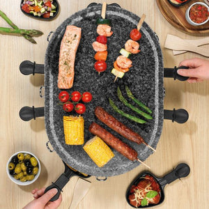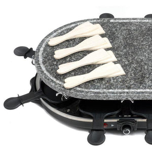 Travel the world with your taste buds with this incredible electric Raclette Grill from Progress. Including eight grill pans and eight wooden spatulas, you can enjoy grilled foods and deliciously melted cheese with the whole family. Perfect for indoor entertaining, this grill features non-stick coated cookware for simple cleaning after use. Featuring 1200 W of power and removable stone cooking plate, you can grill food right at the table, ideal for impressing friends and family.