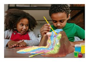 Build a huge volcano with clayMake amazing colorful volcanic explosionsProduce rainbow colors by mixing primary colorsAnd many more activities…
