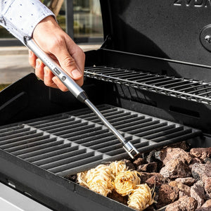 A multipurpose lighter for lighting candles, barbecues, gas cookers, paper, cigarettes, thin wood, etc. It has a safety lock and LED indicators to show the charge level.