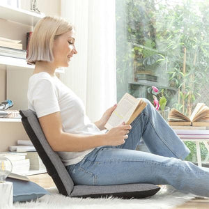 An original and elegant reclinable floor chair which is very comfortable and convenient, enabling up to 6 positions so that it can be adapted to the desired posture each time. It features a backrest with an adjustable angle (adjusted from 90º-180º), so it can be used to sit on, or to lie down on when it is fully unfolded like a mat. This modern and versatile floor chair is ergonomic, multi-position and multifunction, offering a multitude of options for children and adults. Ideal for reading, meditating, resting, watching television, playing video games, etc. In addition, the lightweight and portable design with a carrying handle means that it can easily be taken anywhere it is needed. It is also easy to store and takes up the least amount of space when flat, so it can be stored under the bed or sofa, in the wardrobe, etc. It provides a stable support and firm hold thanks to its robust structure and quality materials. Recommended for indoor use (bedrooms, lounges, etc.) or in semi-covered spaces of the home (terraces, etc.). It can be cleaned easily (by hand washing).