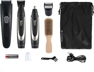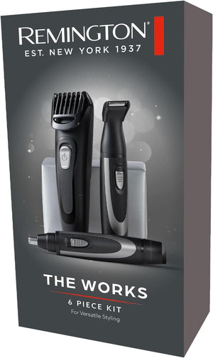 Remington Beard Trimmer Kit The Works (6 Piece Beard Trimmer with Comb (2mm-18mm), Precision Trimmer with Comb (1mm-5mm) & Nose and Ear Trimmer, Advanced Ceramic Blades, USB Rechargable)