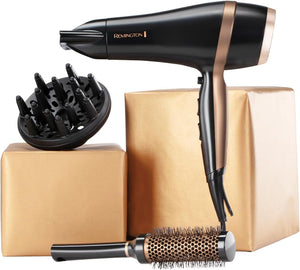 Remington Hair Dryer (Gift Set with Concentrator & Diffuser, Ceramic Ionic Grille, 3 Heat & 2 Speed Settings and Cool Shot, Premium Storage Bag, Round Brush, 2000W) Salon Smooth