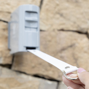 An original and versatile retractable clothes line that is convenient, practical and is the ideal way to hang clothes to dry. The line has holes for coat hangers and will fully adapt to the amount of clothes being hung and holds the coat hangers firmly. The clothes line can be extended to any desired length (max. 4 m). It has a safety block so that the line can be extended to any length required. Its lightweight, retractable, compact design takes up very little space when not in use as the line is fully gathered and the clothes line holder is discretely attached to the wall, which means complete space-saving and optimum use of the space. This type of clothes line makes quick drying and ironing easier, as the clothes are not bunched up and remain at a suitable distance for the air to circulate between the different garments hanging on the coat hangers, and they are well spaced out to reduce creasing. Its fully extended length provides a large capacity and it is suitable for all types of garments. It holds a maximum weight of 20 kg. Although it has mainly been designed for use with coat hangers, it can also be used with clothes pegs or for hanging straight onto the line, depending on the garment and the desired use. Coat hangers and clothes pegs are not included. The position can be adjusted (180º) and it can be used indoors and outdoors. It is installed onto the wall and includes instructions and mounting accessories (2 wall supports, Allen key, 7 screws and 7 dowels).
