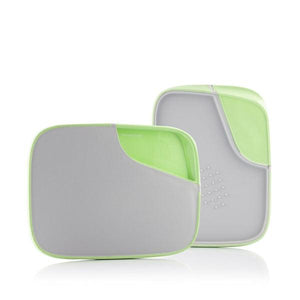 An original and versatile chopping board with a multifunctional and multi-position design that is a must for modern kitchens. It offers many ways of simplifying food preparation tasks. It allows you to chop comfortably, as it is non-slip and has central suction points so that food doesn't slide around. It also comes apart, with one end serving as a grater which can be removed from the board, making it very useful for holding cut or grated food and placing it in the saucepan or frying pan. This kitchen board is also reversible, as both sides of it can be used depending on uses or requirements. The raised edge prevents spills, making it perfect for thawing food without the water spilling onto the kitchen worktop. It helps to keep things tidy and is hard-wearing, compact and lightweight. It is also easy to clean as it is dishwasher safe.