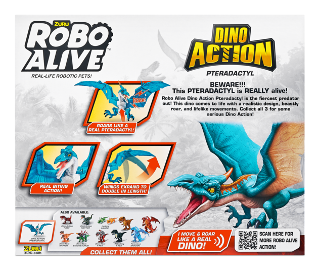 • 3 On The Loose: Will you tame the terrorising T-Rex, raging Raptor or terrifying Pterodactyl? It’s more than alive- It’s Robo Alive!
