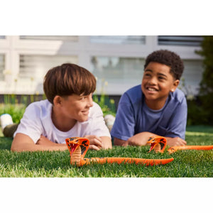 Unleash the thrill with the Robo Alive King Cobra! Measuring a terrifying 17.52 inches (44.5 cm) from tongue to tail. Featuring smart movement technology, it has realistic tongue-flicking movements and slithers across the floor, hunting its prey—watch out, it could be you! Perfect for epic pranks, hide it under the dining table or sneak it into a friend's backpack for blood-curdling screams. With ultra-realistic snakeskin, this King Cobra looks as frightening as the real thing. Dare to pick it up and collect the entire Reptile Collection for an unforgettable adventure!