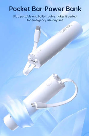 Romoss 2,000mAh Pocket Bar Powerbank & Integrated Type C Cable White