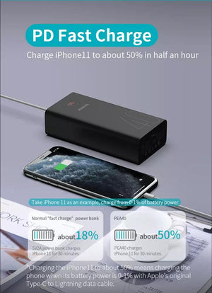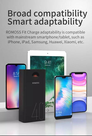 - High Capacity - Get up to 40,000mAh of power with the ROMOSS PEA40 portable battery pack. Experience fast charging with its 2-way PD 30W with Type C and 2 Type-A ports and stay powered for longer. Portable charger for iPhones, iPads, and more