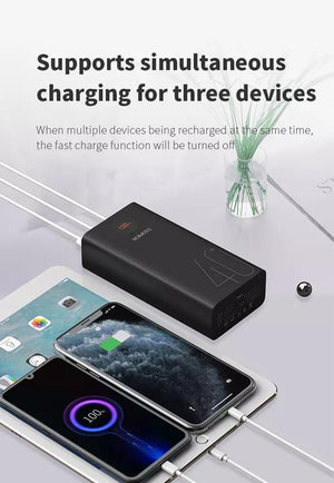 - Fast Charging - 30W Power Bank with 3-Outputs. Charges PD and QC-supported devices. Charges up to 3 devices simultaneously also can be used as a backup portable laptop charger. Recharges the iPhone 13 Pro max from 0% to 55% in only 30mins