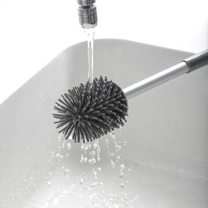 An original antibacterial rubber toilet brush that is much more hygienic and long-lasting than traditional toilet brushes. It is also easy to wash and clean. It has the great advantage of a detachable and breathable base, as the brush holder brush has grooves that filter out the water for a fast and effective drying, and which also prevents drips and spills. The soft flexible bristles enable an in-depth clean, reaching all corners of the toilet.The brush has an ergonomic, robust, non-slip, detachable handle.