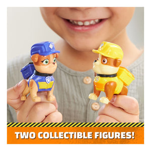 • RUBBLE AND MIX ACTION FIGURES: Parents and kids can imagine teaming up with their favourite PAW Patrol Pup, Rubble, and his cousin Mix, as they create imaginative building adventures together.
