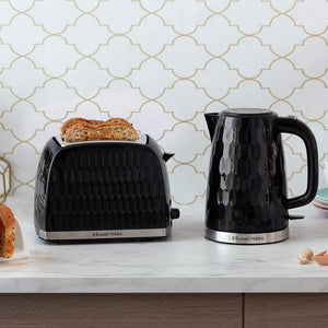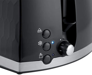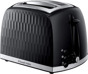 Russell Hobbs 2 Slice Toaster - Contemporary Honeycomb Design with Extra Wide Slots and High Lift Feature Black