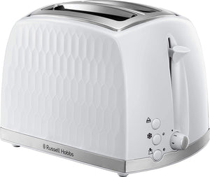 Russell Hobbs 2 Slice Toaster - Contemporary Honeycomb Design with Extra Wide Slots and High Lift Feature White