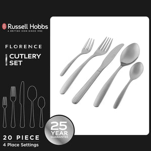 - Add a touch of sparkle to your dinner table with the timeless 20-piece Florence cutlery set from Russell Hobbs which is made to last.