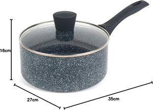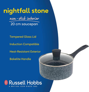 Russell Hobbs Nightfall Stone Non-Stick Saucepan - Pressed Aluminium Milk Saucepan with Tempered Glass Lid, 20cm/2.6L Sauce Pot for Induction, Small Cooking Pot with Soft Bakelite Handle