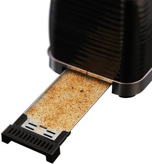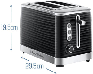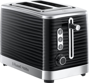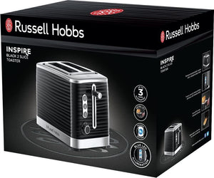 Russell Hobbs Black Inspire 2 Slice Toaster, Wide Slot with Frozen, Cancel and Reheat Settings, High Gloss Chrome Accents, 1050 W