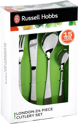 - Perfect for everyday use or occasions, this 24 piece London Cutlery Set from Russell Hobbs boasts a stylish design to suit any home.