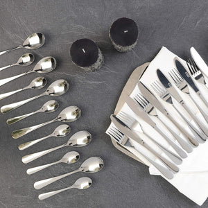 - Crafted from durable stainless steel, the timeless tableware set is balanced with a pleasant weight, comfortable to hold and use.