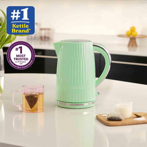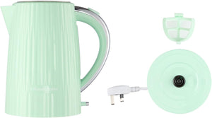 - STYLISH TEXTURED DESIGN - The 1.7 Litre capacity electric kettle comes in a contemporary pistachio coloured textured design with chrome accents.