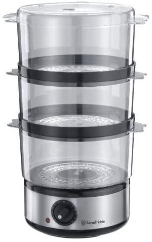 This Stainless Steel 3 Tier Steamer from Russell Hobbs is great for steaming meat, fish and veg to create that easy healthy meal you've been craving ! Its 7L compact capacity is perfect for smaller households. It has a 60 minute timer for precise results and has an auto shut off for safety. It's easy to dissemble for ease of cleaning and includes a handy rice bowl for practicality !