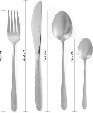 - The set includes four knives, four forks, four dessert spoons and four teaspoons; perfect for families or for when guests are over