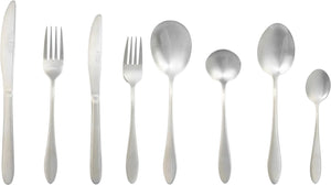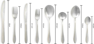 Box Content: 6 x Forks, 6 x Knives, 6 x Teaspoons, 6 x Dessert Spoons, 6 x Soup Spoons, 6 x Dessert Knives, 6 x Dessert Forks, 2 x Serving Spoons