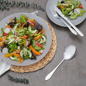 Perfect for dressing the table at a dinner party or as a gift for new homeowners, the stylish and durable Russell Hobbs Lisbon cutlery set is a staple for any cutlery drawer. With 6 place settings of beautiful stainless steel knives, forks, spoons and an additional two serving spoons, it’s sure to make a lasting impression. This set is designed to make clean-up a breeze, as it’s all 100% dishwasher safe. Plus, with a 15 year guarantee, you can trust this quality set will last for years to come.