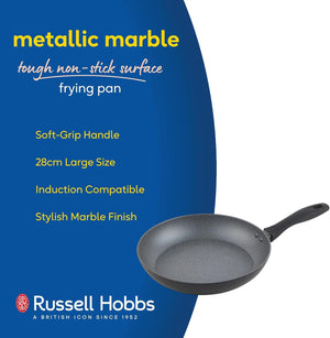 - The Russell Hobbs Metallic Marble 28cm Frying Pan is a stylish kitchen addition that offers reliable cooking results for daily meals.