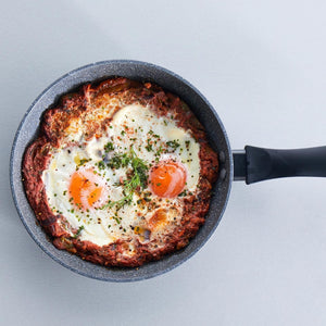 - The frying pan features a tough non-stick surface that ensures simple cleaning after use and easy release of food every time.