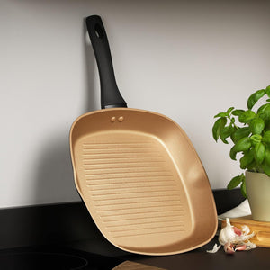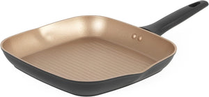 - Boasting a stylish design, the griddle is crafted from strong, forged aluminium and features a gold non-stick interior.