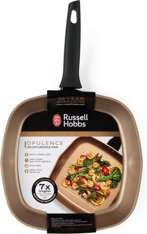 - A great addition to any cookware collection, the Opulence 28 cm Griddle Pan from Russell Hobbs allows you to cook with little or no oil
