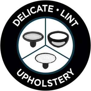 - Three Handy Attachments - A delicate attachment for finer fabrics. The upholstery attachment is for furniture and curtains and a lint brush attachment removes lint, hair, and pet fur from fabrics