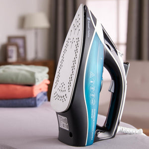 The fast 2600 W heat up means you won’t be waiting long to iron and the non-stick ceramic soleplate gives smooth glideability over all different fabric types. The 60g/min continuous steam and powerful 155 g/min steam shot gives ensures superior heat distribution, helping you to tackle even the toughest of fabrics.