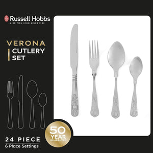 - Start a new cutlery collection or replace an existing one with this elegant 24-piece Verona cutlery set from Russell Hobbs.