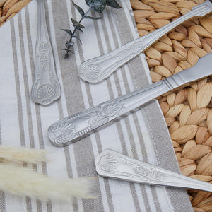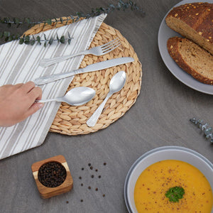 This elegant 24-piece stainless steel Russell Hobbs Verona Cutlery Set has everything needed to set the table. With knives, forks, spoons, and teaspoons included, the utensil set will contain everything you need to host with the most. Each piece is made from top-quality 18/10 stainless steel and boasts a timeless, classic design which sits perfectly on a variety of tableware schemes. With this set, you'll be able to enjoy perfect meals with style and sophistication guaranteed.