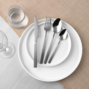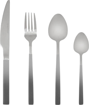 Add a stylish and elegant finish to your dining table with this 16 piece Salter Ombre Cutlery set. Containing four knives, four forks, four dessertspoons and four teaspoons, this modern flatware table set is ideal for 4 person dining. Crafted from 18/0 grey and silver plated stainless steel, this lightweight cutlery has a sophisticated shimmer ombre design handle. This modern silverware set is perfect for everyday use fitting comfortably in the hand. Handwash and dry thoroughly to maintain the shine.