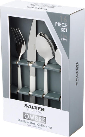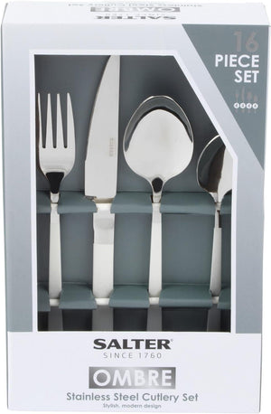 - Add an elegant finish and compliment any dining table setting with this Salter Ombre 16 piece cutlery set.