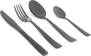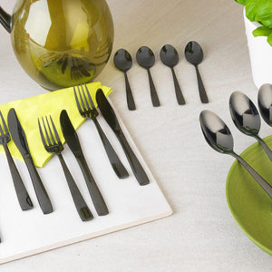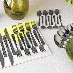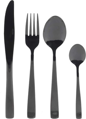 Dine in style with this exquisite black Salter cutlery, inspired by classic regal elegance with a unique modern twist. Ideal for creating a distinctive and original dining look, this 16 piece set contains 4 knives, 4 forks, 4 tablespoons and 4 teaspoons made from mirror polished stainless steel with a black coating which is guaranteed to impress your guests. Practical and durable, the set is perfect for everyday use while the gorgeous style will refresh and renew your existing tableware.