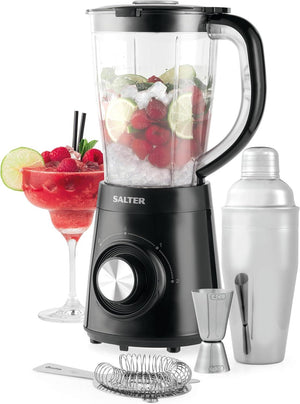 Salter Cocktail Blender Set – BPA Free 1.5L Jug Blender, Includes Cocktail Shaker & Accessories, 2 Speed Settings & Pulse, Stainless Steel Cross Blade, Locking Safety Lid, Crushes Ice, 500W