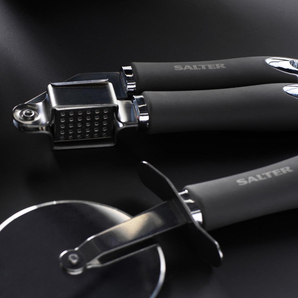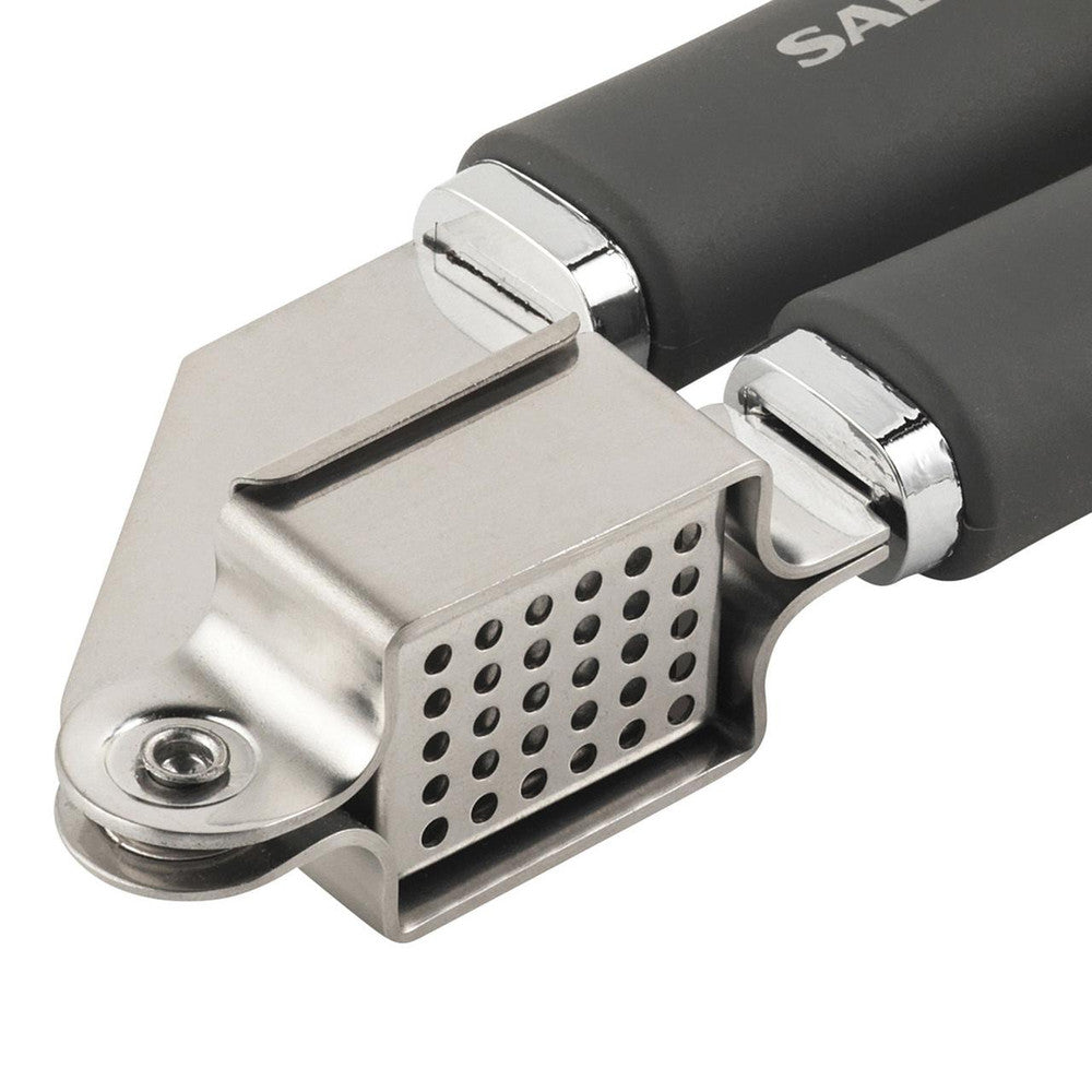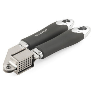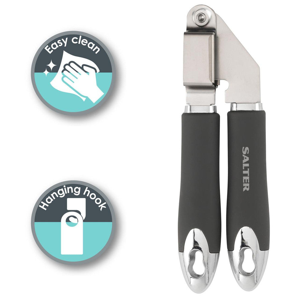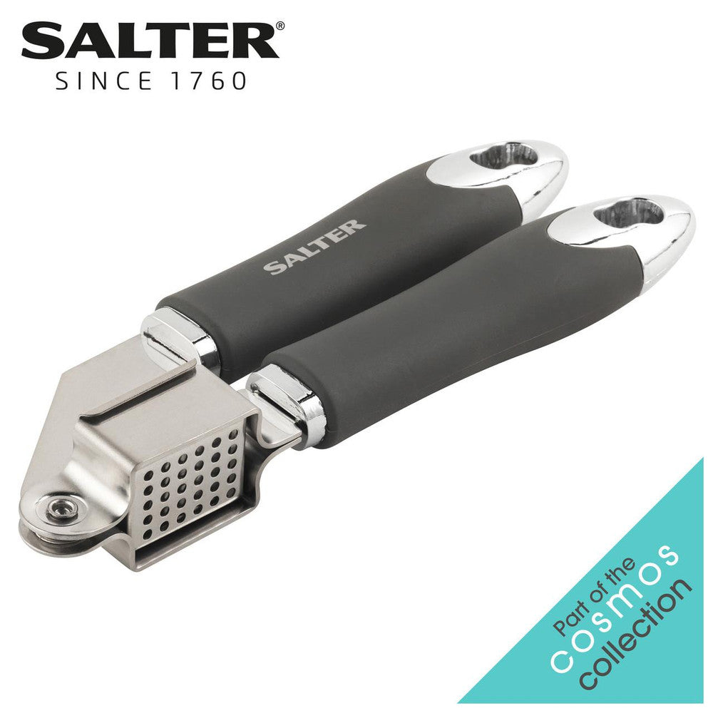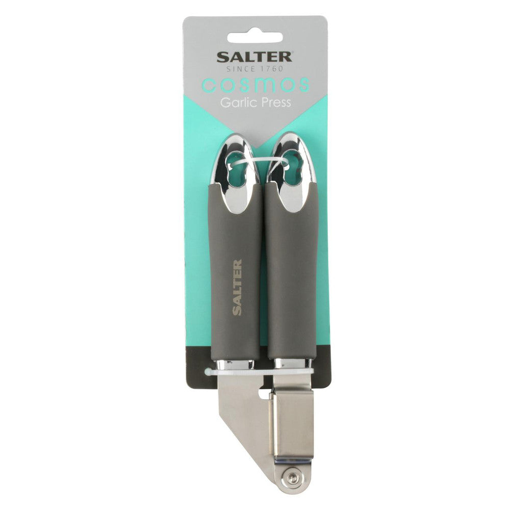 - A kitchen essential, this garlic press from the Salter Cosmos range is a must have kitchen tool for your cooking needs.